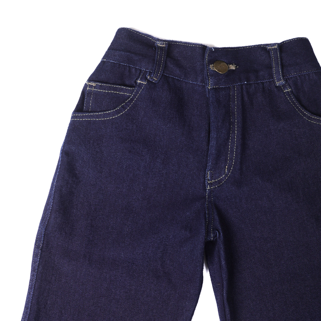 Give your little one a cool and comfy look with these classic dark-blue denim jeans. Designed for everyday style and durability, these jeans feature a relaxed fit with sturdy stitching and a soft, breathable cotton knit fabric that keeps kids comfortable all day long. The functional pockets and button closure add a touch of grown-up style, making them perfect for casual outings, playtime, or family events. Pair with a t-shirt or shirt for a complete look!