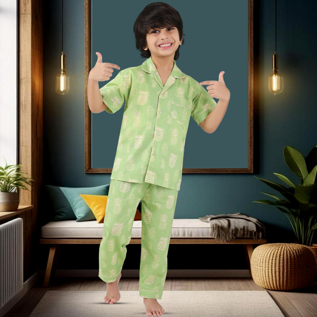 Wrap your little one in comfort and cuteness with Baby Closet’s 100% Cotton Half-Sleeve Night Suits, specially designed for kids aged 2 to 8 years. Made from soft, breathable cotton, these night suits promise a cool and cozy sleep, keeping your child comfortable all night long. Featuring cheerful pineapple prints, the unisex design adds a fresh, fun twist to bedtime – perfect for both boys and girls. Each set includes a half-sleeve top paired with full-length pajama bottoms, offering a relaxed fit and easy movement. Gentle on delicate skin and bursting with tropical charm, these night suits are a sweet bedtime essential for every little dreamer.