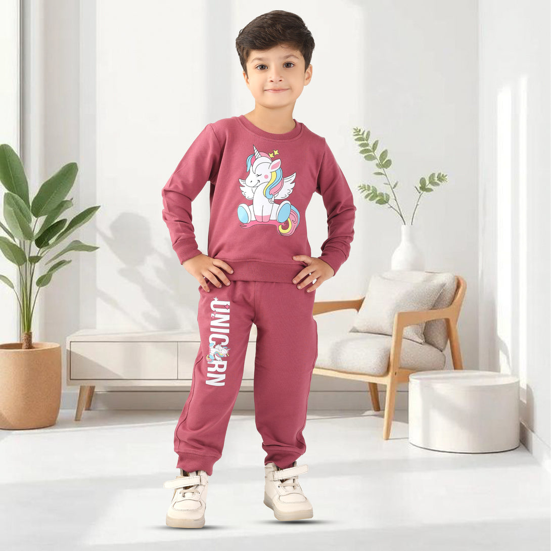 Add a touch of magic to your child’s wardrobe with this adorable Unicorn-Themed Unisex Coord Set for kids aged 2 to 9 years. Made from super-soft cotton knit fabric, this set features a full-sleeve sweatshirt with a delightful winged unicorn print and matching jogger pants with a bold “UNICORN” graphic down the leg.